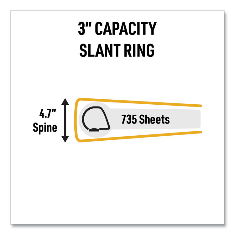 Get everything you need to keep your facility's safety data sheets safe with the Avery UltraDuty SDS poly binder bundle pack with dividers and sheet protectors. This simple kit includes a 3" SDS binder with chain, preprinted A-Z dividers made with heavy-duty plastic and 25 sheet protectors with secure flaps. Designed to withstand constant use and the harshest of conditions, the industrial-grade binder is built with a durable and flexible plastic that can endure damage from water, abrasion and chemicals such as heptane, isopropyl alcohol cleaner, sodium hydroxide and more. The front and back covers are also wider than those of traditional binders in order to be able to cover the divider tabs and sheet protectors. The 36" chain also ensures that your safety data sheets stay hooked into your SDS binder holder or rack so that they all stay in one place. The metal chain features clasps that hook into a reinforced hole in the binder spine so that the binder rings and locking mechanism do not get damaged over time. An elastic strap is also attached that hooks onto the front cover to keep the binder securely closed. The slanted binder rings hold standard 8.5" x 11" paper.