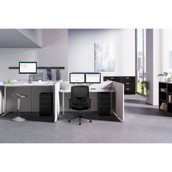Use to divide space or create an office. Constructed to absorb sound so noise is kept in and out. Powder coated finish on steel frame helps reduce scratches. Create a freestanding panel with T-base foot (sold separately).